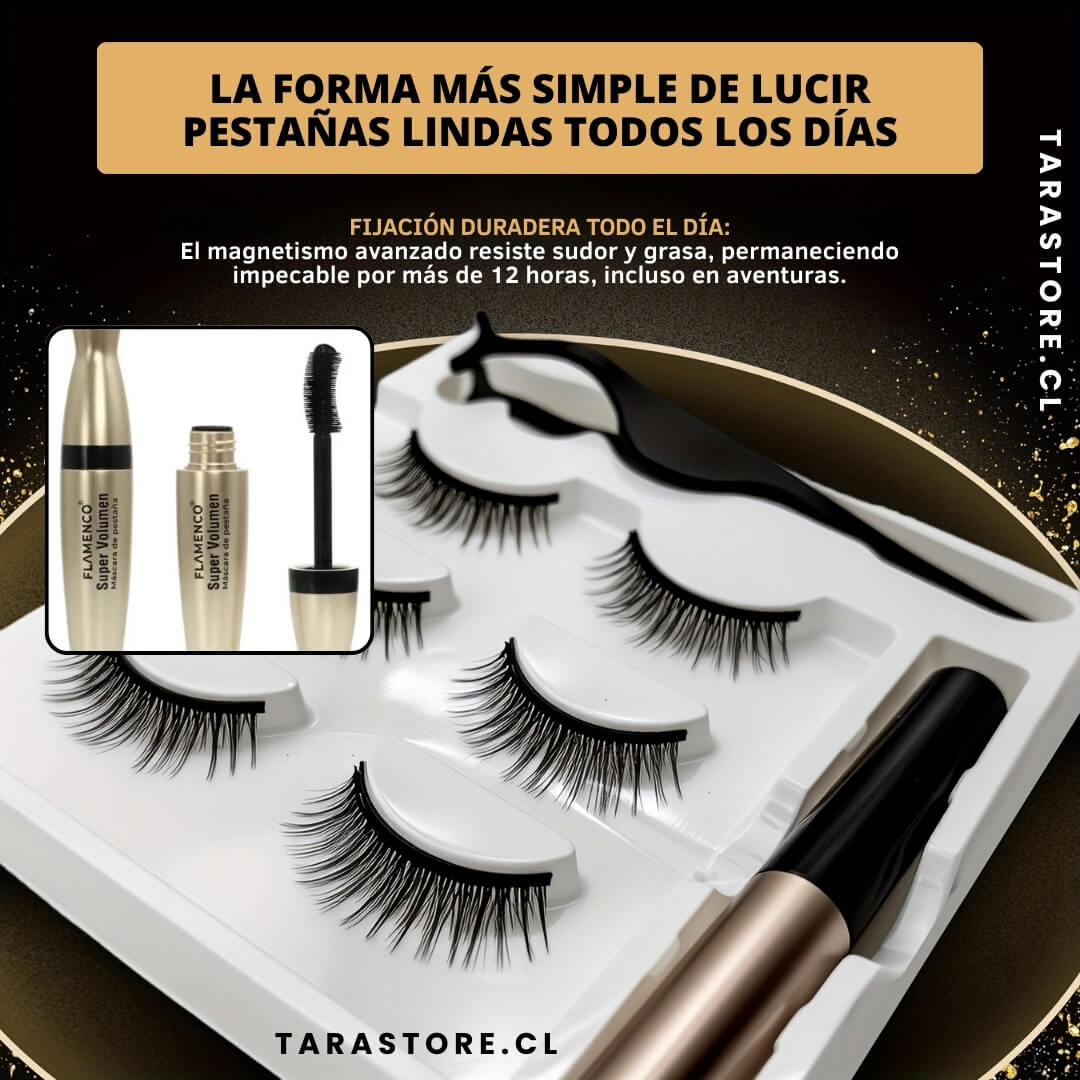 Olvídate del pegamento, de la irritación o de pestañas que se despegan. Las tiras magnéticas se ajustan fácil y quedan firmes sin maltratar tus pestañas naturales.